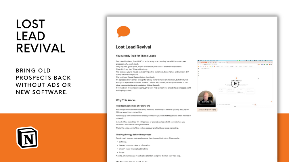And if you want help writing or refining your messages, the Lost Lead Revival GPT (included free) can generate clean, natural follow-up scripts that fit your business and communication style.